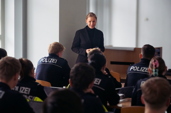 Den Auftakt machte die Teilnahme an der Aktionswoche „Worte statt Wunden“ der Polizei Brandenburg, die anlässlich des Aktionstages „Nein! Zu Gewalt gegen Frauen“ läuft. Dazu gingen die Präsidentin der Hochschule Prof. Dr. Heike Wagner, die HPolBB Gleichstellungsbeauftragte Diana Schilling, die Polizeiseelsorgerin Beate Wolf, Ausbildungsleitung sowie Lehrkräfte in den laufenden Unterricht und lasen unseren Anwärterinnen und Anwärtern authentische Erfahrungsberichte von Frauen vor, die selbst Gewalt gegen sich erleben mussten. Auf ausgeteilten Lesezeichen sind zudem abtrennbare QR-Codes, über die Betroffene diskret Adressen für Beratung und Hilfe finden.