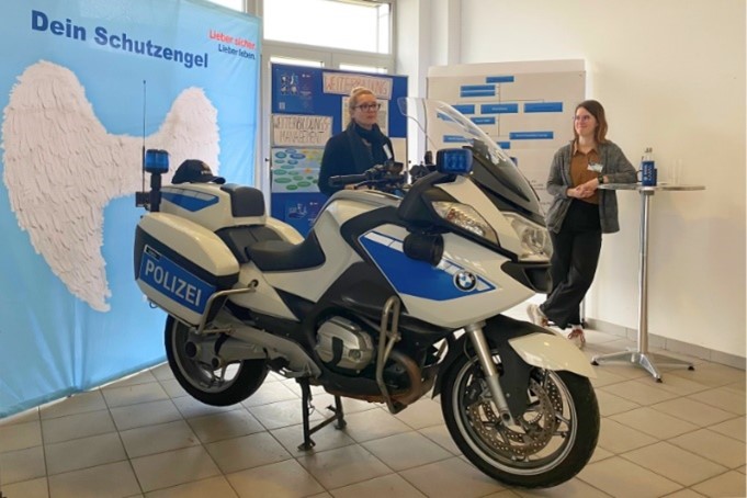 Weiterbildungsmanagement: Ein weiteres Highlight war die Präsentation des Polizeimotorrads, das im Rahmen der Weiterbildung vorgestellt wurde. Außerdem brachte eine Kollegin aus der PI Oberhavel einen Drogenkoffer mit, um den Studierenden die Arbeit im Bereich Prävention näherzubringen. So konnten sie hautnah erleben, wie praxisorientiert die Weiterbildung bei der HPol ist.