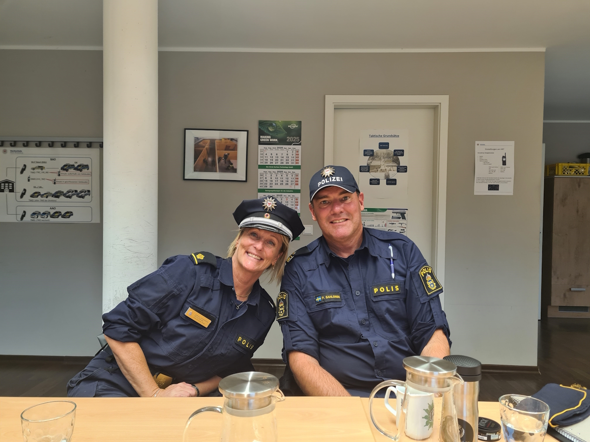 Einer der Höhepunkte war der Besuch im ATZ Liebenberg am 23. Oktober 2025. Dort konnten die schwedischen Kollegen einem Training zur Bewältigung lebensbedrohlicher Einsatzlagen (lebEL) beiwohnen und dabei taktische Vorgehensweisen mit denen der schwedischen Polizei vergleichen. Die Inhalte umfassten u. a. Training mit dem Farbmarkierungssystem (MaSy) sowie Elemente der Taktischen Einsatzmedizin (TEM).